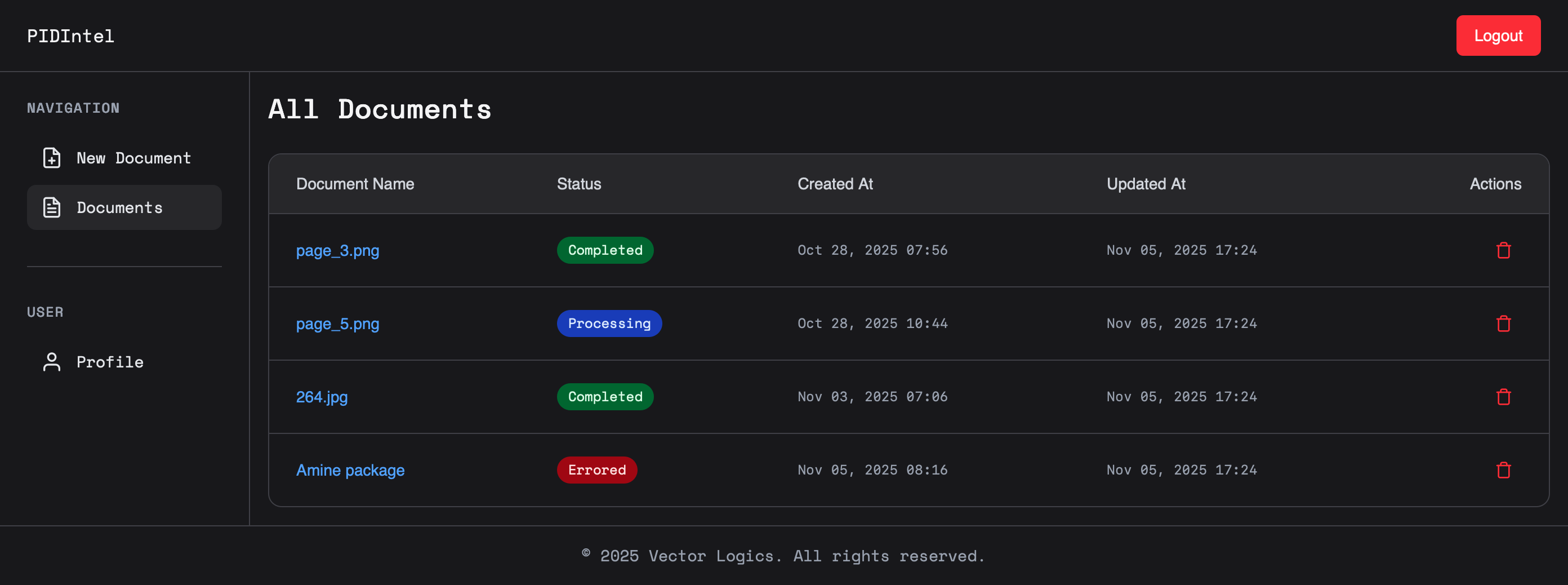No tracing lines by hand, no $50 k licences, no week-long training courses. PIDIntel turns any P&ID into a searchable equipment index, MTO, or DEXPI file in under a minute.